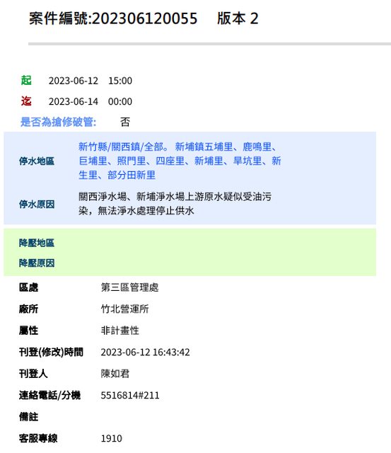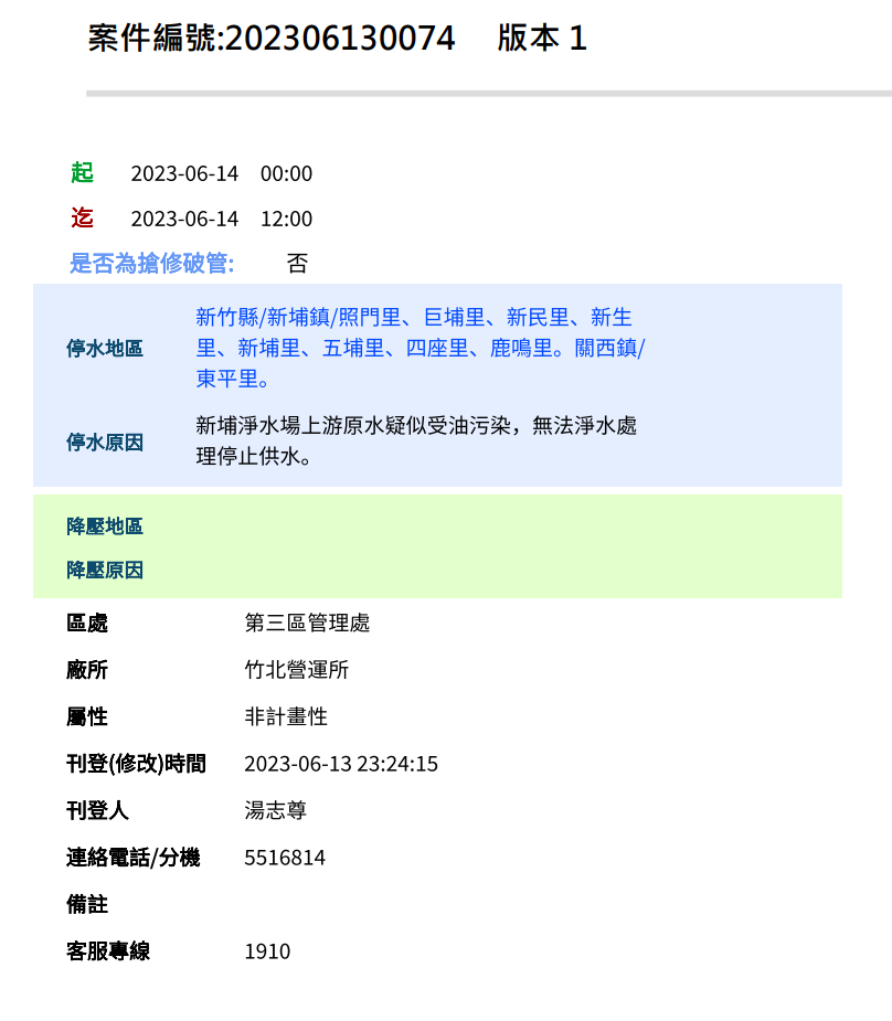 2023/06/12 20:12(新增停水時間、檢方明現勘)