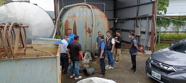 新竹縣政府環保局懷疑,一家廢棄物再利用場內堆置的滿廢棄事業溶劑,疑自邊坡滲入鳳