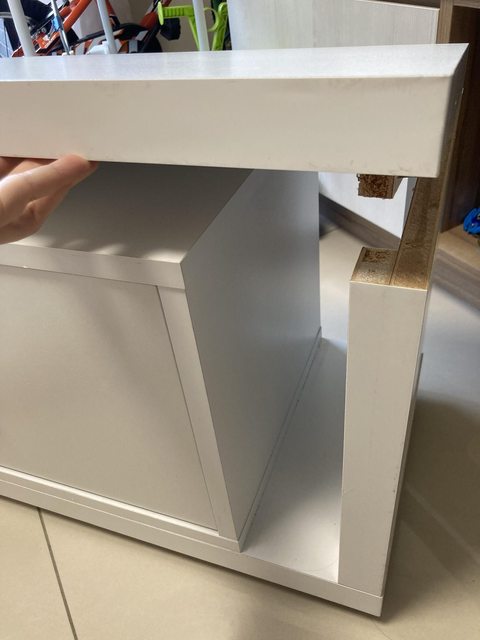 物品項目:白色櫃子,有兩個抽屜,長127cm(可伸長)寬30cm高39cm,使用約一年多。頂板和側板已分離,需自行用釘子固定!