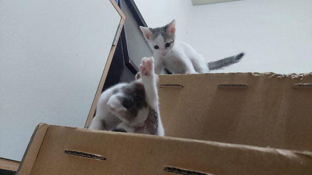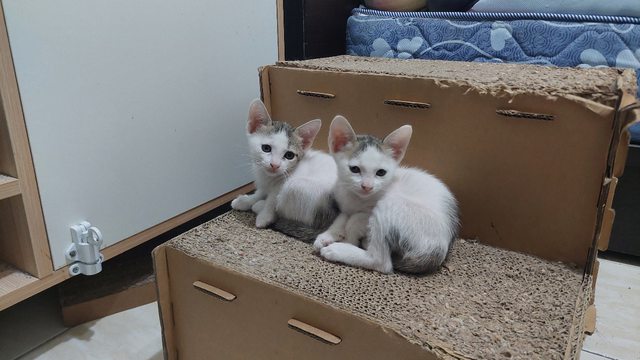 貓咪花色:白底虎斑和 賓士