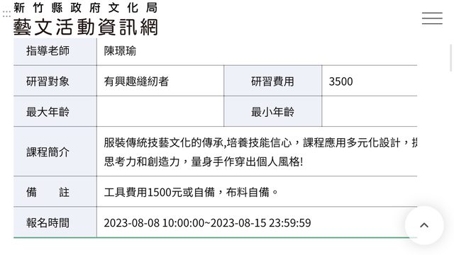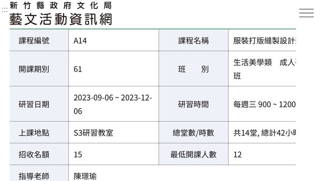 新竹縣文化局服裝打版研習班明天8/15截止,還差三位成班。