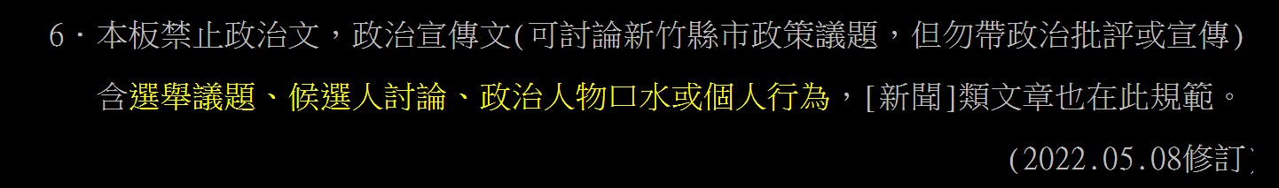 → jennyfish102: 新竹版出現這種各自支持的議題,就只是吵架跟互酸 08/14 14:32