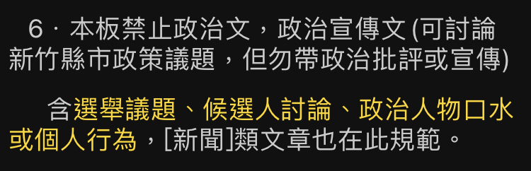 在地鄉民請看清楚板規,"可討論新竹縣市政策議題"
