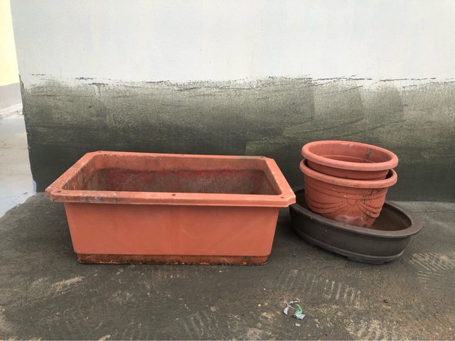 如題如附圖,近日整理7個空心磚、1水泥洗衣板、4個花盆(棕色是陶瓷、其餘塑膠)