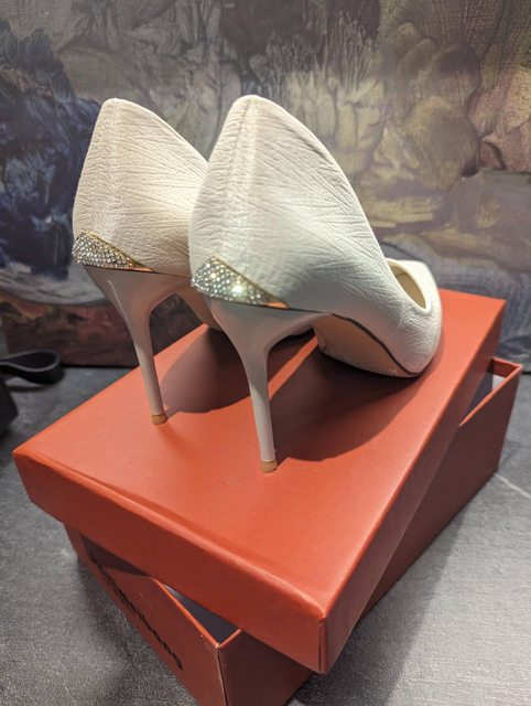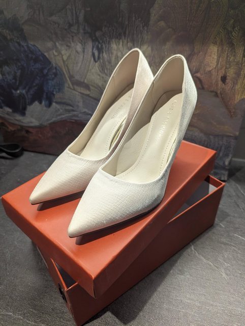 物品項目:米白色緞面高跟鞋