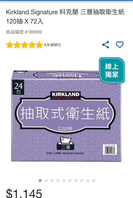 標題Re: [合購] 好市多線上 柯克蘭衛生紙72入