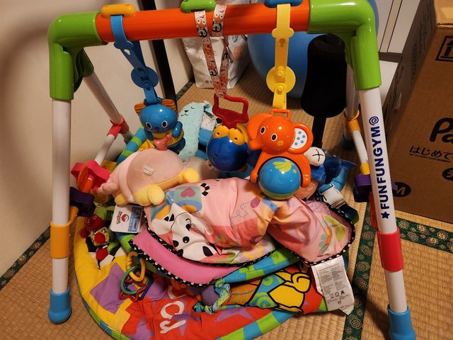 中/右吊環斷裂,可自行用其他方式懸掛,玩具皆可正常使用,中間的下拉有音樂播放