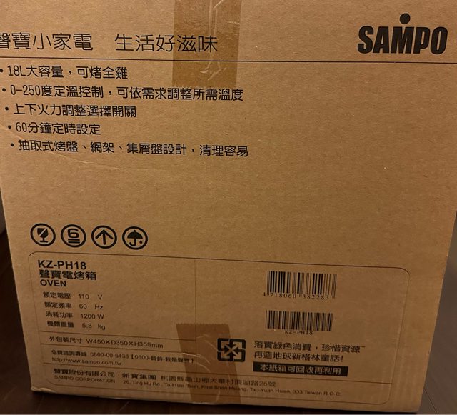 1. 聲寶18L烤箱 (未使用過)