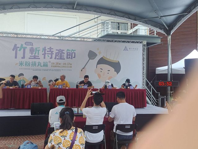 他們比賽吃的是 炒米粉+摃丸湯+青草茶