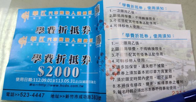 標題[贈送] 華江汽車訓練班-學費折抵券