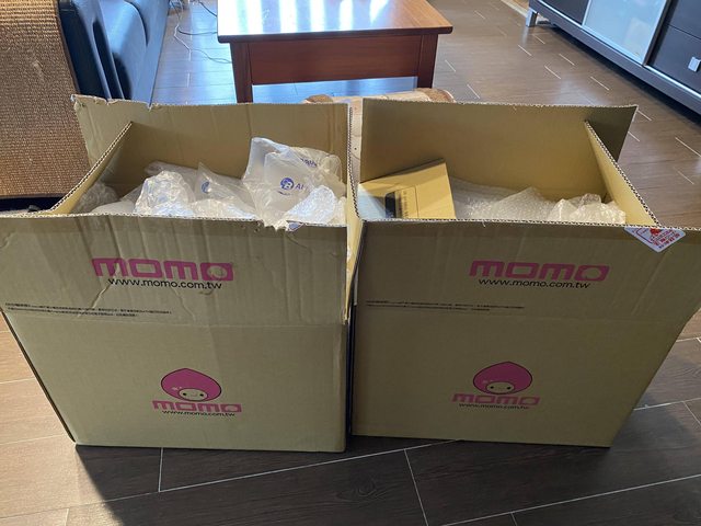 使用MOMO的大紙箱裝起來封好了,體積很大,請勿試圖用機車來戴