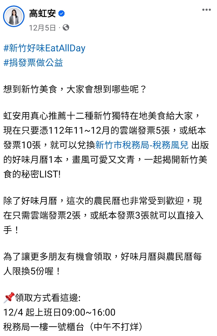 推 vipergirl : 新竹市稅務局可以用發票換 12/13 23:29