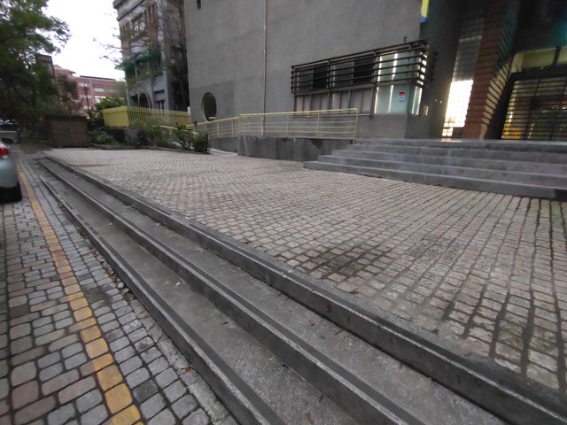 建功高中在建功路這一側有活動中心 其屋頂是大樓梯 但就直接被校牆擋住了