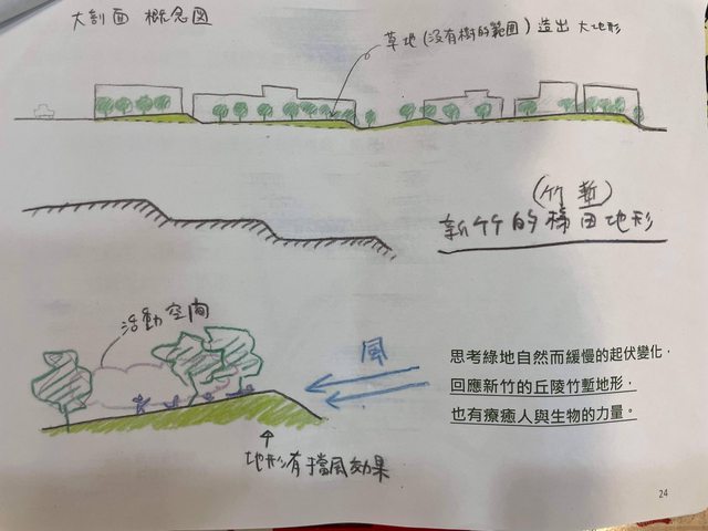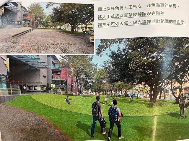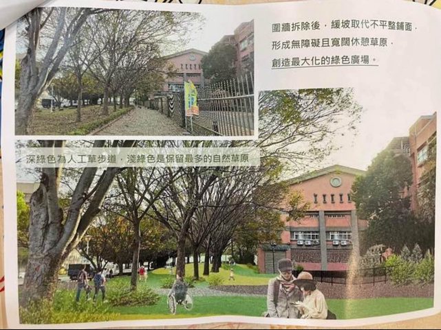 塑都市草原、綠色梳理增加地面灌木、分享通透又安全的校園圍牆,使都市、文化、生態
