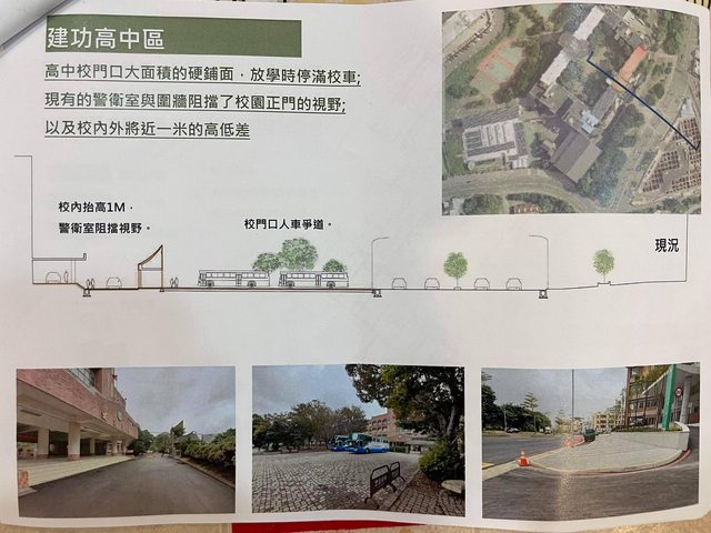 為了使綠地向校園沿伸,建功高中亦突破常規將圍牆敲除,改以矮綠籬方式做為校園區隔