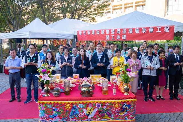 建功綠帶暨周邊環境改善工程,14日在建功高中舉行開工典禮。(新竹市政府提供/王惠