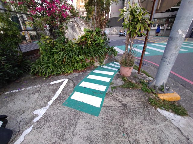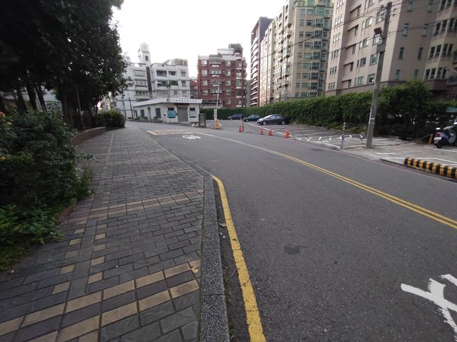 群英樓旁邊有實體人行道 無退縮牆,無實體的地方都仰賴標線人行道