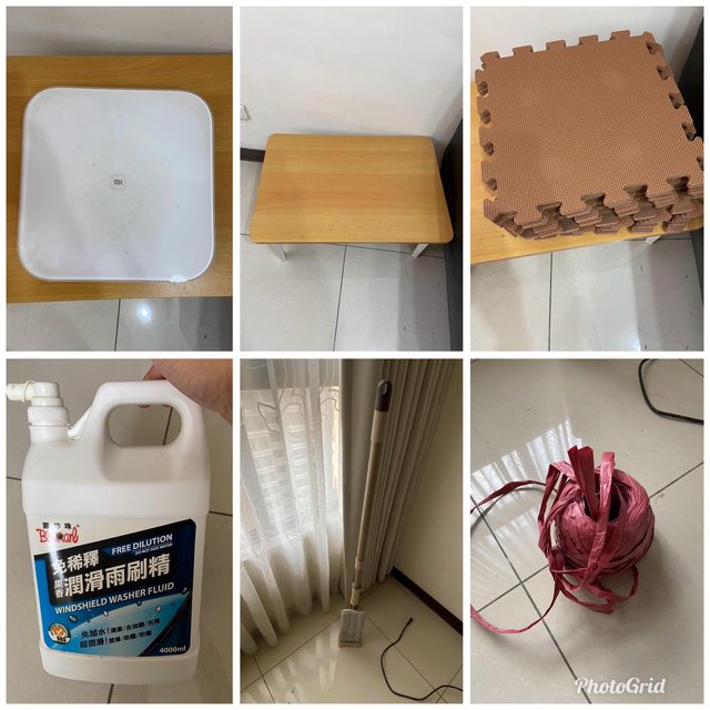 小米體重機、可折疊小茶几、拖把、巧拼12片、雨刷精、尼龍繩
