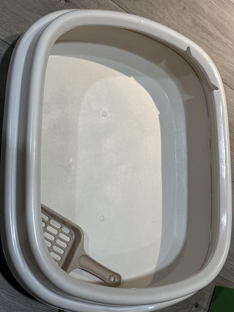 貓砂盆加貓砂鏟僅幼貓時使用兩個月,稍微有使用刮痕,但已清洗過