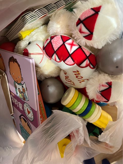 幼兒玩具,有娃娃、書、玩具,大概0-3歲可以玩,有些是孩子不玩的、有些是他人贈送