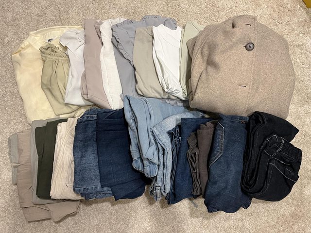 多件女裝如圖,上衣褲子長短都有,大多是UQ或日韓貨,size大約M號,衣況良好。