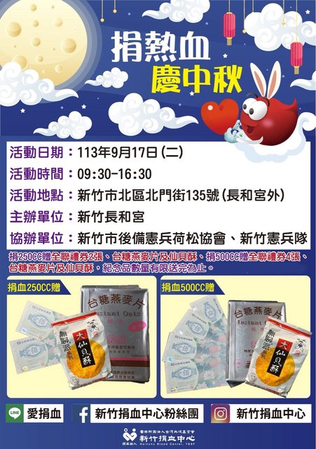 標題[捐血] 9/17 新竹市長和宮捐血送全聯禮券