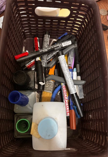 工具組 油漆筆 墨線 斜口鉗 跟水貼還有膠水都有 太久沒用了有點佔空間