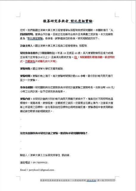 標題[徵求] 人因道路照明研究參與者
