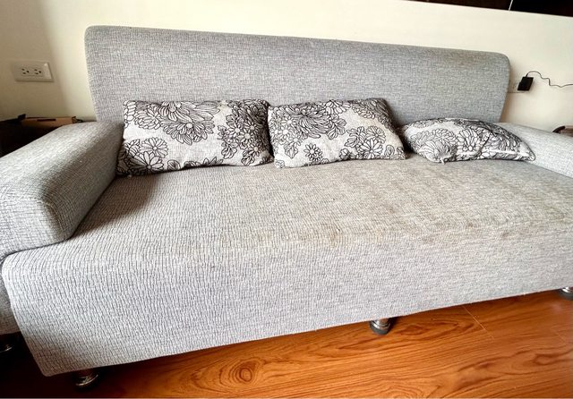 物品項目:三人座沙發(含腳凳及3個靠枕)