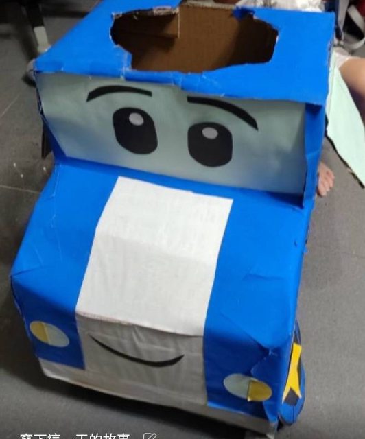 紙箱做的波力,雙手有開口,可穿在身上,幼幼班以上就能穿了,大班穿的話,稍微有點卡