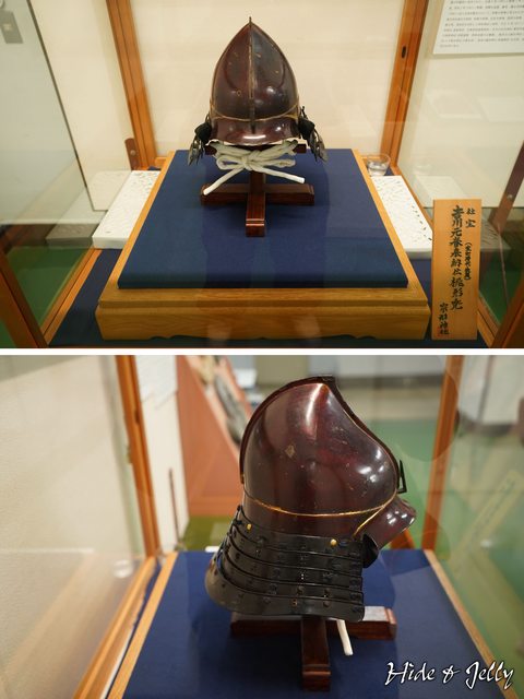 展示室中另一個很珍貴的文物,是吉川元春的頭盔。西元1566~1578年毛利與尼子氏的攻