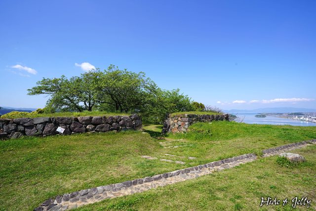 靠近海岸,標高90公尺的湊山上。經過吉川広家、中村一忠、加藤貞泰的修築,成為了擁