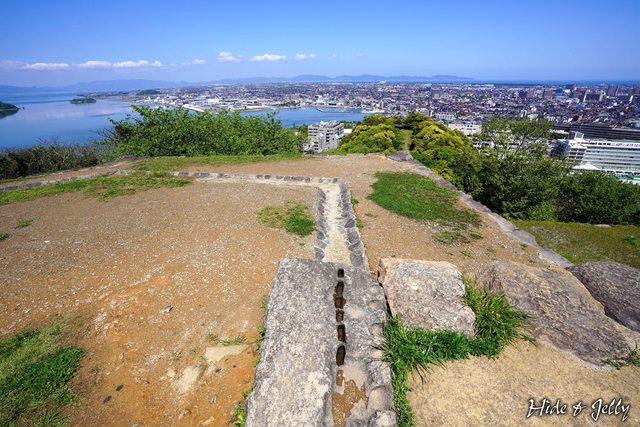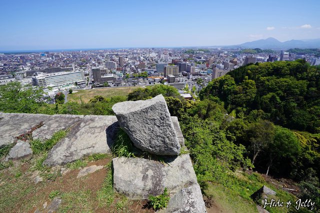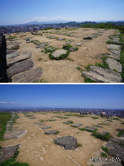 回到本丸,我們來看看天守台吧。天守台的礎石都還保留著,可以看出地基的支柱結構非
