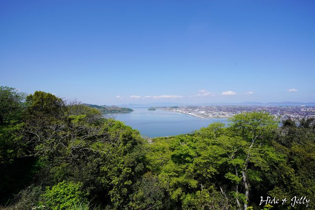 本丸的西側,可以眺望橫跨鳥取島根縣界的中海,景色非常好,前方中央的萱島也清晰可