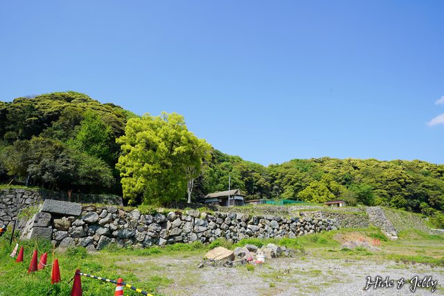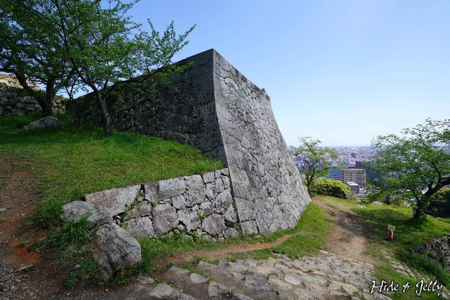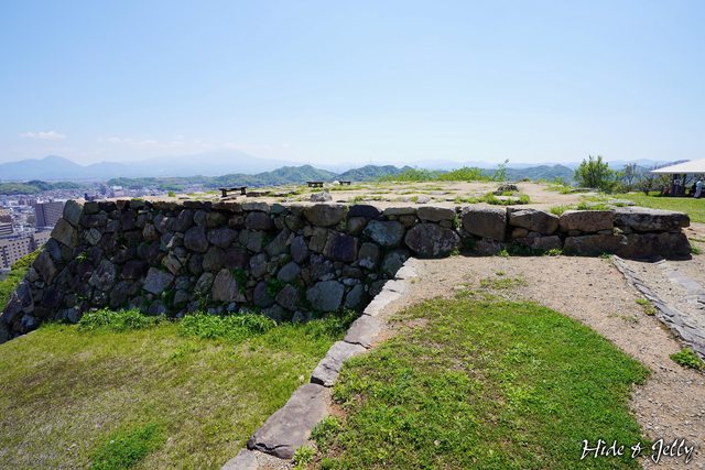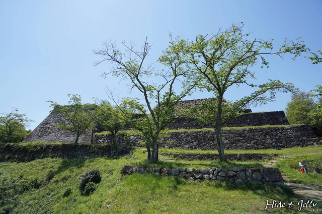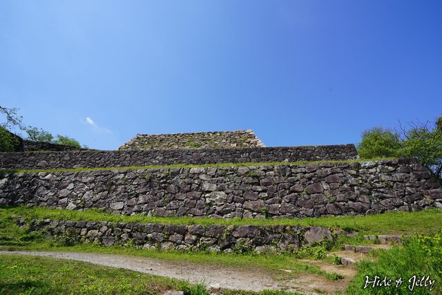 側面也可以看到本丸內的天守台只有2顆石垣而已,但本丸往下的部分則出現段差。