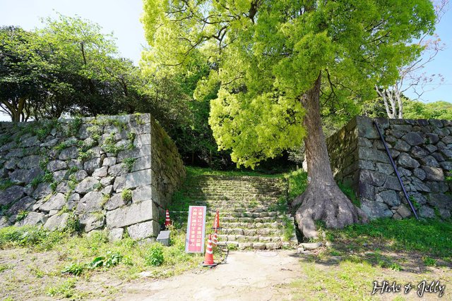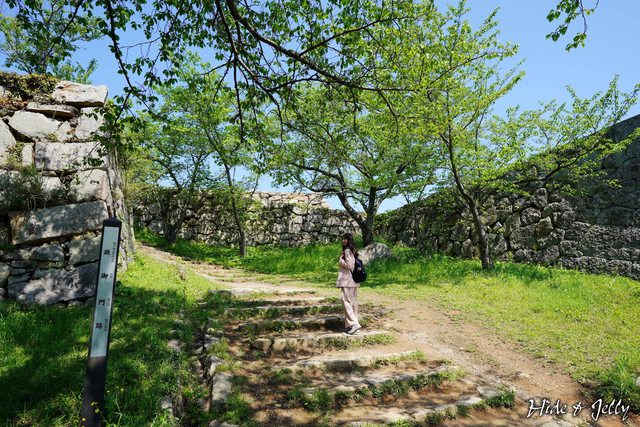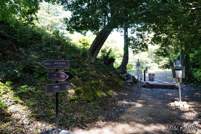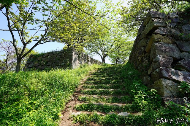 井戶旁就是開始一整段的登城階梯了,一口氣爬完,5分鐘內可以抵達本丸與內膳丸位於
