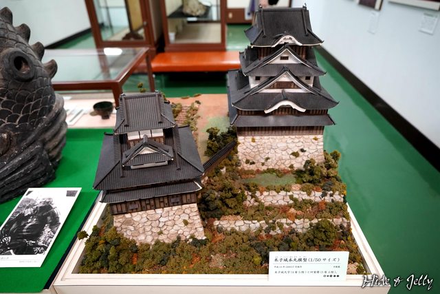 還有米子城雙連天守的模型,左側的是吉川広家時代(西元1591年)所建的小天守,是3重4