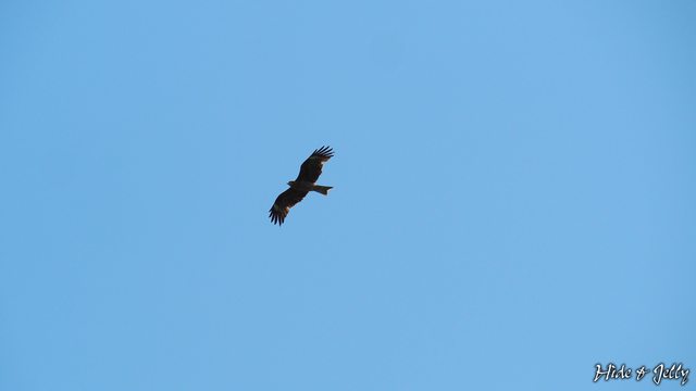 一隻飛越石垣的老鷹,現場的確很多鷹類在飛翔著,但要等待飛到石垣旁邊的時機,實在