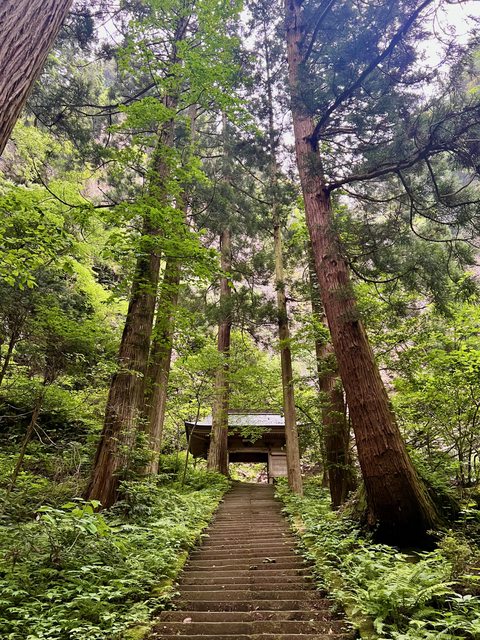 這就是壇鏡神社了。神社蓋在50公尺高的峭壁下,緊鄰壇鏡瀑布,進入此區需自行注意落