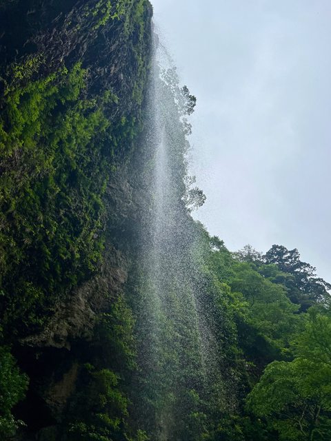 可以沿著本殿旁的小徑,走到瀑布的內側的凹陷區,由內而外,感受瀑布的水勢。這類的