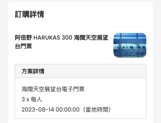 標題[讓售] 阿倍野海闊天空展望台門票3張