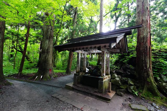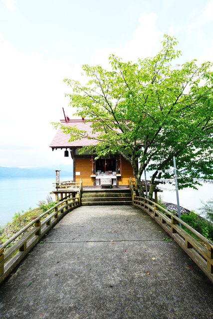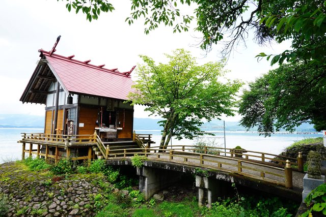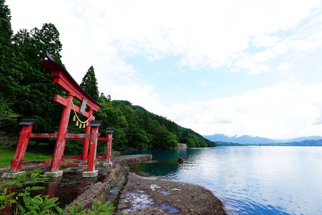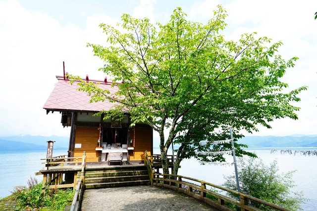 (三)秋田縣 1. 御座石神社。神社不大但幽靜,鳥居加上湖光水色,令人印象深刻
