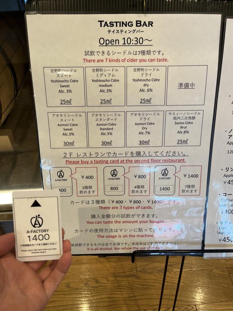 2.青森a-factory。在睡魔之家附近,此處販售各種蘋果的加工製品(但沒有蘋果本人), 範圍不大,二樓有七種蘋果酒付費試飲並販售