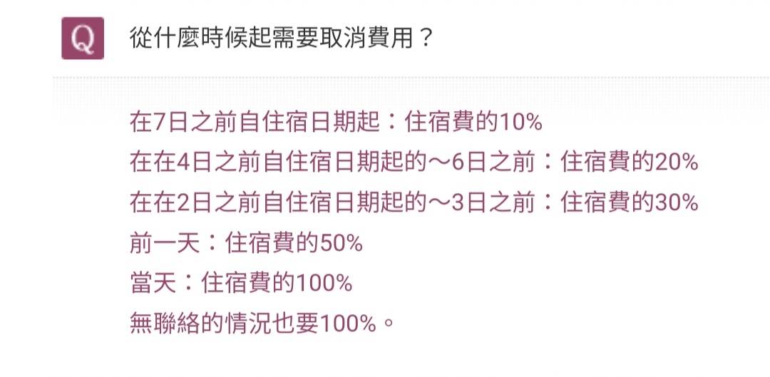 推 chrissuen : 宿泊日より7日前:宿泊料金の10% 是指7日前開始 09/01 15:38