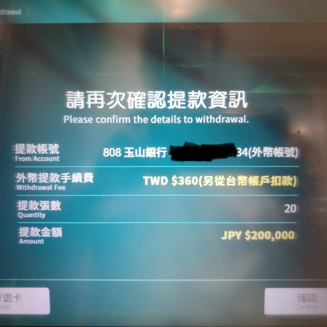 → winsonlu : 我記得之前玉山在外幣ATM領“台幣帳戶”的日幣印象 09/02 02:38