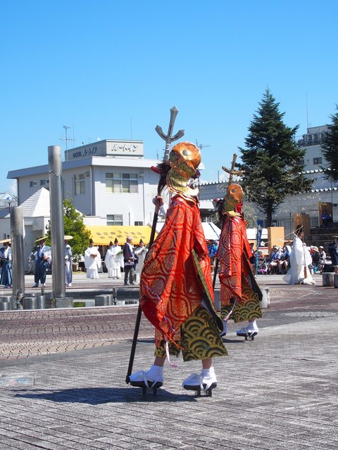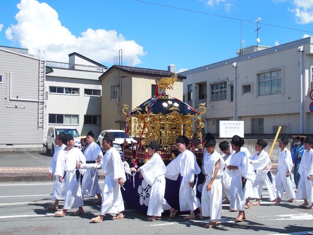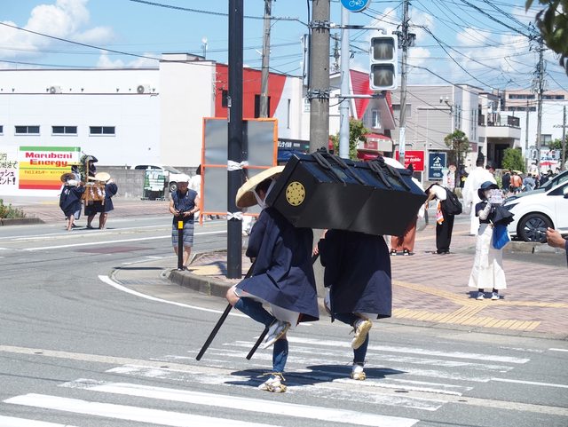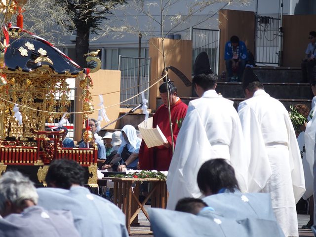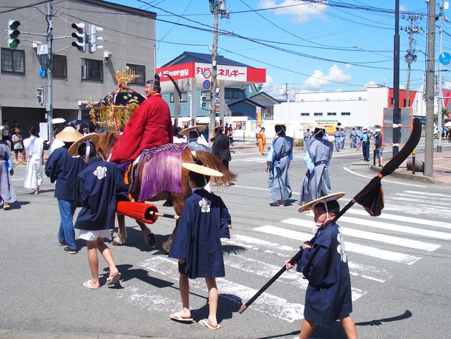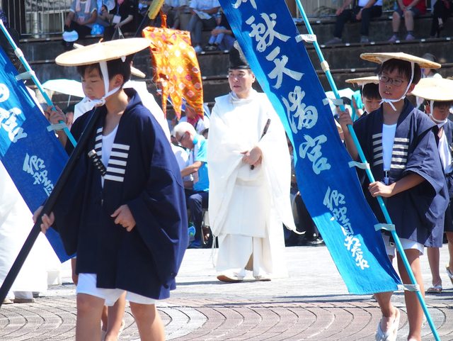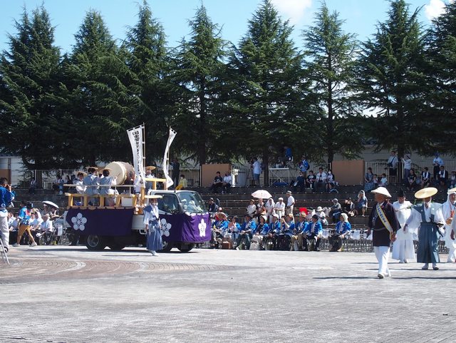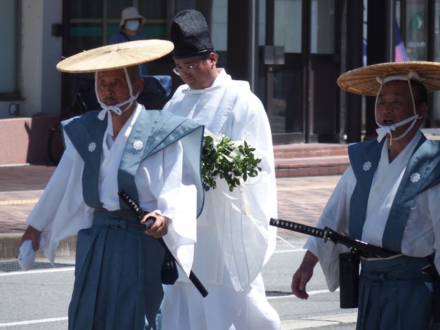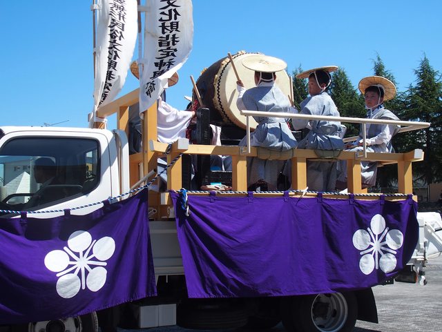 神官和武士進場 小孩在車上打町太鼓