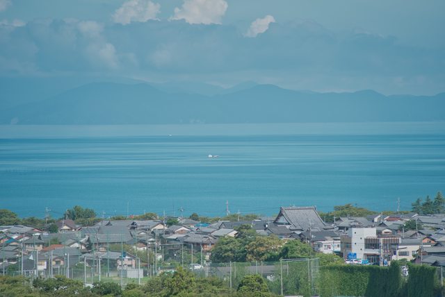 晴天之下,在北之丸址看得到壯闊的比良連峰,就位於琵琶湖另一端