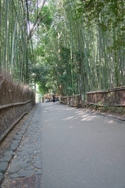 從嵯峨嵐山站下車,在清晨陽光下散步,不用多久高聳的竹林就出現在眼前。
