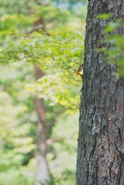 後來往銀河泉路上,碰到一群歐美客對著樹木猛拍,原以為只是蟬在比較矮的地方鳴叫,