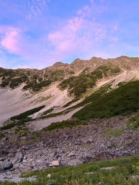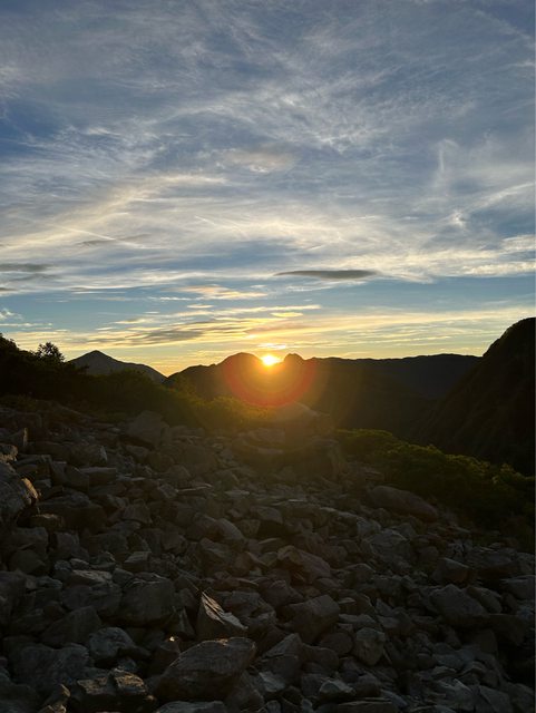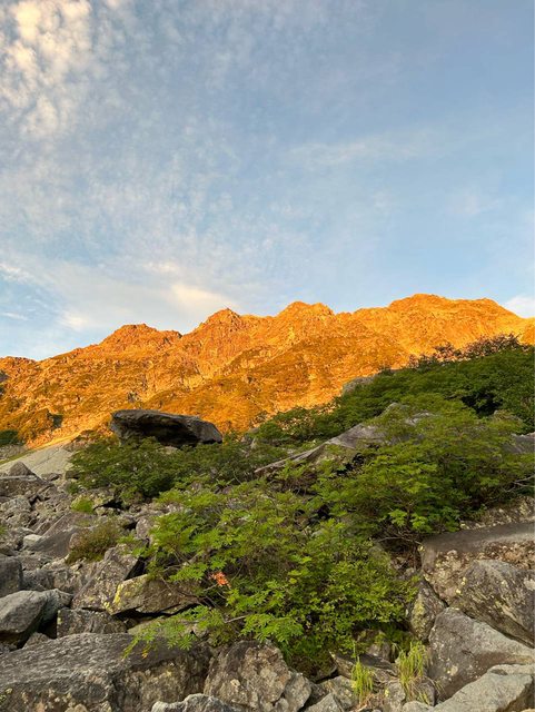 第二天5點輕裝出發攻頂,太陽剛出來時山岳的的朝焼け很漂亮,要是搭配紅葉就更完美